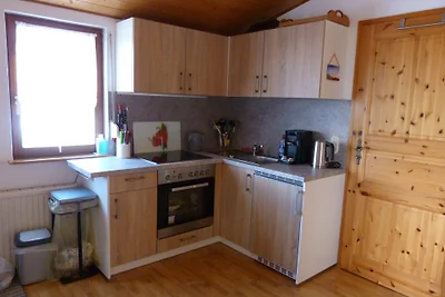 Gemütlich eingerichtete Ferienwohnung mit (Einbau-)Küche, Schlafzimmer, Bad und Wohnzimmer mt Balkon.
