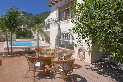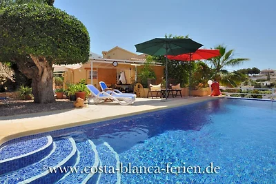 Gepflegtes Ferienhaus zur Alleinnutzung mit schönem Meerblick und grossem Privatpool auf einem Privat-Grundstück mit Doppelgarage in einer schönen Panoramagegend in Calpe gelegen