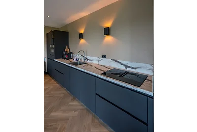 Parterre: (offene Küche(Wasserkocher, Toaster, Kochherd(4 Kochplatten, Gas), Kaffeemaschine(Filter), Kombi-Mikrowelle, Spülmaschine, Kühl-/Gefrierkombination)