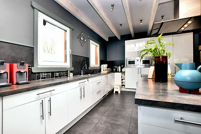 Parterre: (Eingangshalle, Diele, offene Küche(2x Kochherd(4 Kochplatten, Ceranfeld), 2x Kaffeemaschine, Backofen(Grillofen)