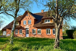 Das reetgedeckte Haus im Friesenstil mit 3 Ferienwohnungen und Ausblick in die freie Natur ist kinderfreundlich und liegt etwa 10 Gehminuten vom Wasser entfernt.