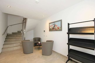 In der 2. Etage: (Wohnküche(Doppelschlafcouch, TV(Flatscreen, Satellit), Esstisch, Wasserkocher, Toaster, Kochherd(4 Kochplatten, Ceranfeld)