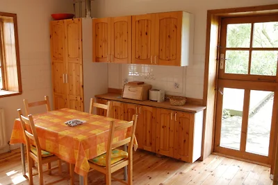 Großzügiges Ferienhaus, 200m vom Meer, idyllisch in einem alten Obstgarten gelegen, mit Blick auf Wiesen und Felder. Ein Ort zum Wohlfühlen und Entspannen für Mensch und Hund.