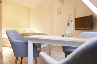 Gemütliche 1-Zimmer-Ferienwohnung auf Juist mit Schlafbereich, Sitzecke, Sesselgarnitur und Kochnische.