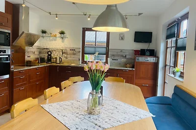 Küche(Kochplatte(Ceranfeld), Kaffeemaschine, Backofen, Mikrowelle, Spülmaschine, Kühl-/Gefrierkombination), Wohn/Esszimmer(Doppelschlafcouch, TV(Satellit), Esstisch)