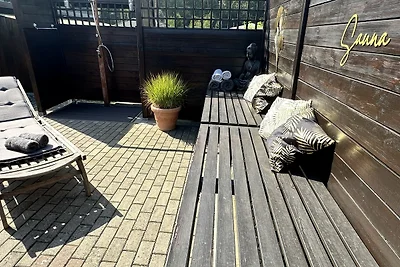 Unser Ferienhaus liegt ca. 50m vom Altdorfer See entfernt und hat eine 5 Sterne Bewertung. 2 Schlafzimmer, ein schönes Wohnzimmer, zwei Bäder und eine Sauna und Dachterrase