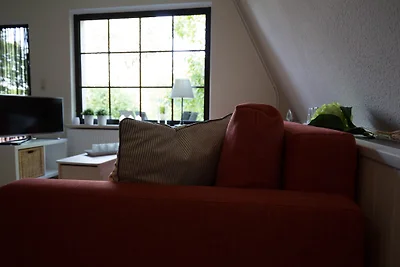 Ferienwohnung "Eulennest" in Schlowe, 90 m², 2 Pers., 1 Schlafz., Wohnzimmer, Sofa mit Bettfunktion, voll ausgest. Küche, Eßzimmer, Duschbad, sep. Zugang über Außentreppe, Terrasse