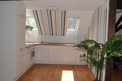 Gemütliche Ferienwohnung im Dachgeschoss bietet auf ca. 50 m2 Wohnfläche Platz für bis zu 4 Personen, hat eine grosse Garderobe und Schränke zum Verstauen der Kleidung.