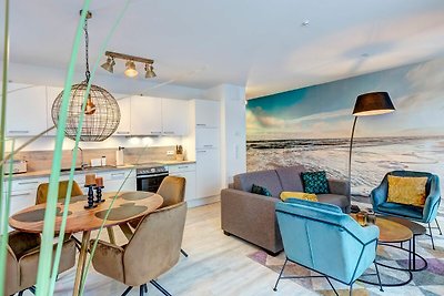 moderne Fewo Luft in ruhiger, zentraler und strandnaher Lage. Sie hat ein Schlafzimmer, eine Terrasse und einen Bio-Kamin. Die Ausstattung lässt keine Wünsche offen.