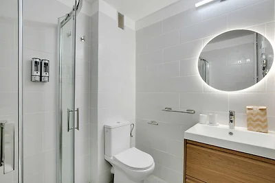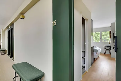 In der 2. Etage: (Küche(Herd, Wasserkocher, Toaster, Kaffeemaschine, Mikrowelle, Kühlschrank), Wohn-/Schlafzimmer(Einzelbett, Doppelbett), Badezimmer(Toilette))