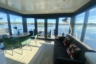 Verbringen Sie Ihren Urlaub auf Wasser mit einzigartige Blick auf Leukermeer. Sie können ganz rund die Hausboot laufen und via die Treppe direkt ins Wasser gehen.