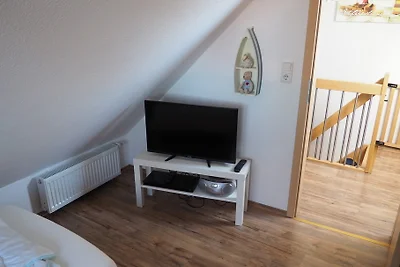 Familienfreundliche Wohnung für 2-6 Personen + Baby,- auch gern mit Hund - im Ober- und Dachgeschoss mit großer Terrasse und eigener Infrarot-Wärmesauna.