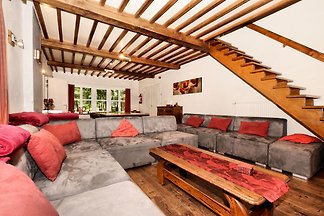 Parterre: (Wohnzimmer(Kaminofen, Radio, Bar, Tischtennisplatte), Aufenthaltsraum(8 Personen)(TV, Kaminofen, Spielkonsole), Esszimmer(Esstisch(36 Personen)), Küche(Kochherd(Gas)