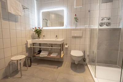 4 Sterne Ferienwohnung mit Charme und Ausblick in die Berge. 78 qm, ein Schlafzimmer mit Doppelbett, 2 Einzelschlafzimmer Dusche und WC getrennt