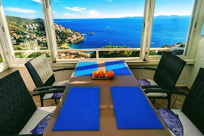Ferienhaus, traumhafte Lage, großartiger Panorama-Meerblick. Komfortabel ausgestattet, Wintergarten, Terrasse, priv. Parkplatz, WLAN, TV-Sat, Gemeinschaftspool nah beim Haus.