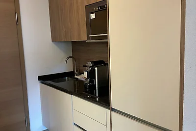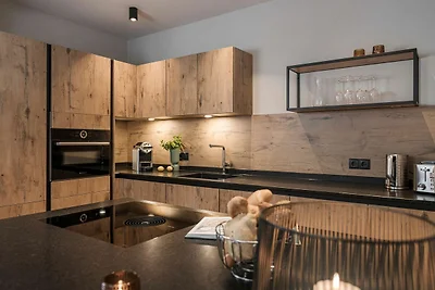 In der 1. Etage: (offene Küche(Kochherd(4 Kochplatten, Induktion), Kaffeemaschine, Kombi-Mikrowelle, Spülmaschine, Kühl-/Gefrierkombination)