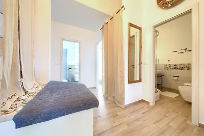 50 Meter vom Strand, Designer Ferienwohnung mit Meerblick, 2 Schlafzimmern, Klimaanlage, einer WLAN-Ausstattung, sowie einem Parkplatz.