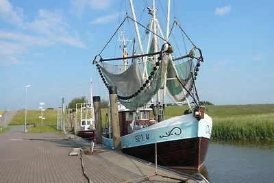 Ferienwohnung direkt am Seedeich gelegen mit Hallenbadnutzung + WLAN, Schlafzimmer und Gästezimmer und Hund erlaubt.