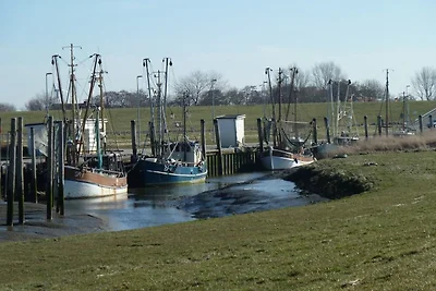 Seele baumeln lassen im Ferienhaus direkt hinterm Nordseedeich. Nordsee, Gastronomie, Spielplatz und Salzwiesen fußläufig erreichbar.