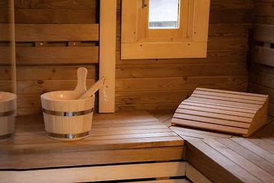 Ferienhuus Wulkje, ca 136 m², max. 6 Personen, Hund willkommen, Sauna, Steg, sonnige Gartenanlage, 3 Schlafzimmer, großzügiger Wohn- und Essbereich, Wohnküche, Boot & Außenborder