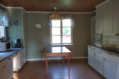 Küche(Kochherd(elektrisch), Dunstabzugshaube, Kaffeemaschine, Mikrowelle, Kühl-/Gefrierkombination, Hochstuhl), Wohn-/Schlafzimmer(Doppelbett, TV(schwedische Fernsehsender)