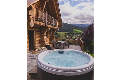 Gemütliches Blockhaus mit großer, umzäunter Holzterrasse, Blick ins Murtal, Whirlpool, finnischer Sauna und Kaminofen.
