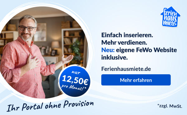Inserieren Sie jetzt für nur 12,50 €/Monat zzgl. MwSt. – provisionsfrei und mit unbegrenzt vielen Anfragen für Ihre Ferienunterkunft.