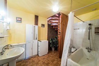 Parterre: (Wohnzimmer(TV, DVD-Spieler), offene Küche(Kaffeemaschine, Mikrowelle, Spülmaschine, Kühlschrank, Tiefkühlschrank), Schlafzimmer(2x Einzelbett)