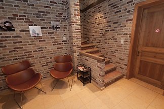 Parterre: (Küche(Wasserkocher, Kaffeemaschine, Kombi-Mikrowelle, Spülmaschine, Kühlschrank, Tiefkühlschrank), Wohn/Esszimmer(TV, Esstisch, Sitzecke), Saal) In der 1.