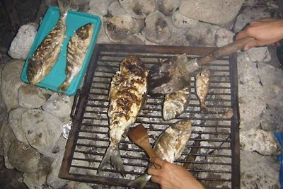 Parterre: (Kochnische(Wasserkocher, Backofen, Mikrowelle, Kühl-/Gefrierkombination), Wohn/Esszimmer(Doppelschlafcouch, TV, Esstisch, Sitzecke, Holzherd), Schlafzimmer(Doppelbett)