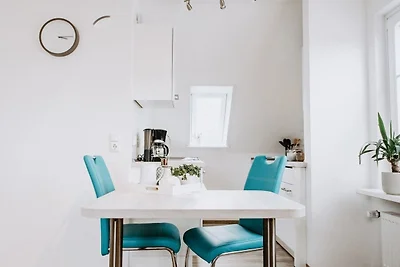 Im maritimen Stil liebevoll eingerichtete Fewo mit Dachloggia in einem 3-Parteien-Haus. Ruhige Lage und nur wenige Schritte vom Strandübergang Böhl entfernt. Bus vor der Tür.