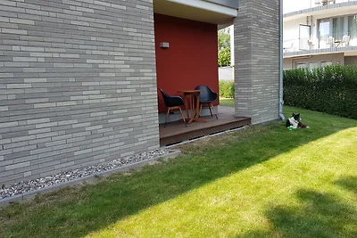 Moderne Ferienwohnung in unmittelbarer Hafennähe für 3 Personen, ebenerdig, mit zwei Terrassen in traumhafter Lage mit viel Grün in der Umgebung.