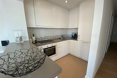 In der 5. Etage: (offene Küche(Kochplatte(Induktion), Wasserkocher, Toaster, Kaffeemaschine(pads), Kombi-Mikrowelle, Spülmaschine, Zitruspresse, Mixer), Wohn/Esszimmer(TV(digital)