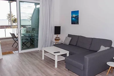Geschmackvoll eingerichtete Ferienwohnung im ersten Obergeschoss mit grossem Balkon und Meerblick sowie Blick auf den Banter See.