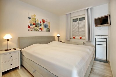 Maritime Ferienwohnung für bis zu 4 Erwachsene und 1 Kleinkind, 2 SZ mit Doppelbetten, großes Wohnzimmer mit Sofaecke, Süd-West-Terrasse, kostenloses Wlan, Tiefgaragenplatz, Sauna