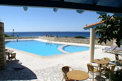 7 Studios + 4 Ferienwohnungen direkt am Meer mit Pool. Wohng. für 2 bis 5 Personen, max. 35, alle mit Meerblick. Großer Pool.