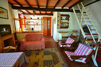 Parterre: (offene Küche(Kochherd(4 Kochplatten), Backofen, Kühlschrank), Wohn/Esszimmer(Kaminofen), Toilette(Waschbecken, Toilette)) In der 1. Etage: (Schlafzimmer(Doppelbett)