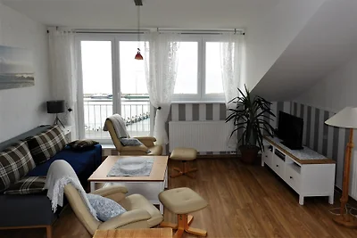 2-Zi-Wohng. BERNSTEIN mit Balkon und Meerblick für 2-3 Pers. direkt in Sassnitz. In 3 Minuten zu Fuß sind Sie am Meer/Hafen. Einkaufsmöglichkeiten und Bäcker um die Ecke.