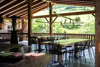 In der 1. Etage: (Wohnzimmer(TV(Satellit), Kaminofen, DVD-Spieler), Wohnküche(Herd, Kochplatte(4 Kochplatten, elektrisch)