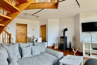 Gemütliches Holzhaus mit gehobenem Komfort, ausgestattet mit einem großzügigen Wohnbereich incl. Kaminofen und einem Wellness Bad mit Whirlwanne und Sauna. Strandnah