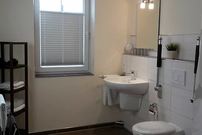 Modern eingerichtete 65 qm grosse Ferienwohnung, vom DTV mit 3 Sternen klassifiziert. Ausstattung für unsere Gäste: Reisebett, Elternschlafzimmer mit Boxspringbett, weiteres Schlaf...
