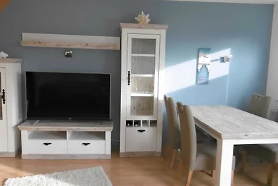 Die Ferienwohnung befindet sich über 2 Etagen im Obergeschoss in einem Mehrfamilienhaus und ist über eine Innentreppe zu erreichen.