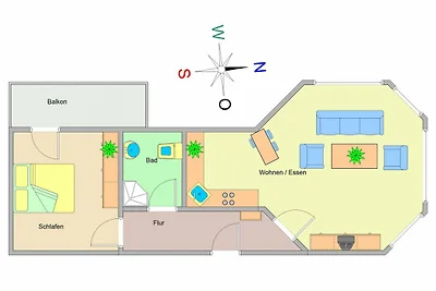 GESCHMACKVOLL EINGERICHTETE 2-RAUM-FERIENWOHNUNG MIT WEST-BALKON Die geschmackvoll eingerichtete 2-Raum-Ferienwohnung befindet sich im hinteren Bereich der Appartementanla...