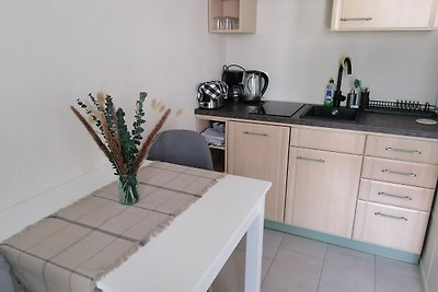 Wohnung: ca. 56 m² und für 2 bis 4 Personen Wohn/Küche, Essecke mit Küchenzeile - Kühlschrank mit Gefrierfach - Kochplatte - Mikrowelle mit Grill und Heissluft