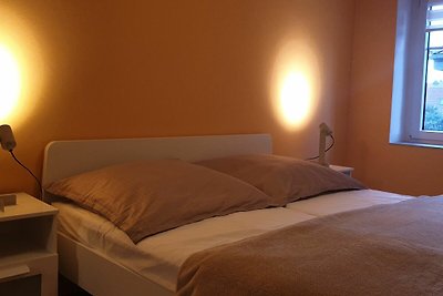 Nette kleine Ferienwohnung in einer historischer Wassermühle mit Wasserrad am Haus (ohne Wasserlauf). Die Unterkunft verfügt über eine Einbauküche mit Geschirrspüler.