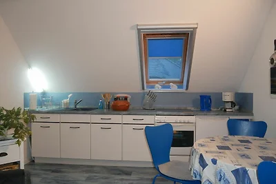 Die gemütliche und idyllisch gelegene Ferienwohnung ist nur 450m vom feinsandigen, barrierefreien Strand entfernt. Sie befindet sich im ersten Obergeschoss (mit separatem Eingang)