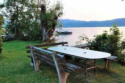 , Wohnzimmer(TV, Esstisch, Kaminofen, Sitzecke), Küche(Wasserkocher, Kochherd, Kaffeemaschine, Backofen, Spülmaschine, Kühl-/Gefrierkombination), Schlafzimmer(Doppelbett)