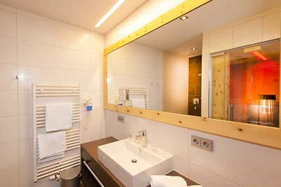 Perfekt für Familien und Wanderer - toller Ausblick, Schwimmbad, Sauna, Fitnessraum. Schöne moderne Ferienwohnung mit 2 Schlafzimmern und einem Wohn-/Essbereich mit Küche.