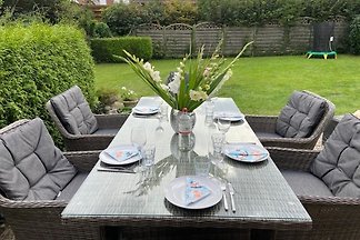 Das Zweifamilienhaus, in dem Sie unbeschwerte Wohlfühltage verbringen können, liegt in der Nähe des Yachthafens und strandnah in einer ruhigen Wohngegend.