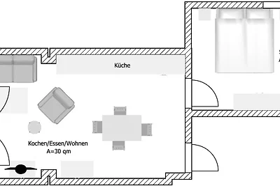 Die Wohnung ist ca. 38 qm gross, renoviert, modern möbliert und hat ein separates Schlafzimmer. Die Parterrewohnung ist komplett gefliest.